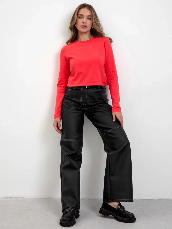 Удлинённый крой позволяет носить лонгслив заправленным или навыпуск. Модель легко сочетать с джинсами, юбками, брюками и пиджаком — для повседневных и более строгих образов. Подходит для девушек и подростков ростом до 180 см.